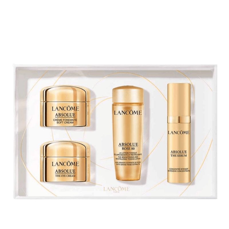 Lancôme Absolue Kit - Rotina de Skincare Completa é um kit de tratamento facial premium que reúne produtos icônicos da linha Absolue. Ele oferece uma rotina completa de cuidados para o rosto, com foco em hidratação profunda, revitalização e rejuvenescimento, sendo ideal para viagens ou para iniciar o tratamento com a linha Absolue.