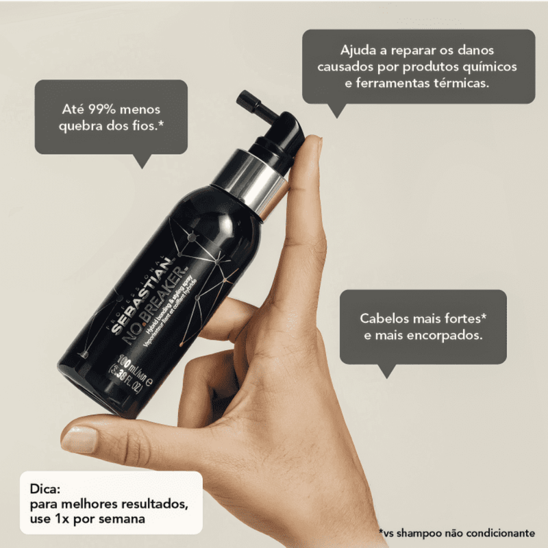 Sebastian No.Breaker Leave-in combina tratamento intensivo e finalização, reparando cabelos danificados enquanto protege contra quebras e agressões diárias. Formulado com Ácido Málico e polímeros, fortalece a fibra capilar, reduzindo até 99% da quebra e deixando os fios mais macios, encorpados e resistentes.