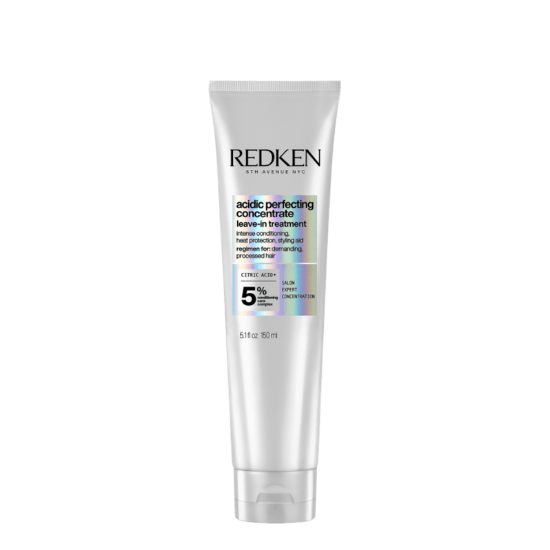 Redken Acidic Perfecting Concentrate Leave-in fortalece cabelos secos e danificados, reduz a quebra, controla o frizz e adiciona brilho intenso. Enriquecido com ácido cítrico e Redken Bonding Complex, proporciona reparação concentrada, condicionamento profundo e proteção térmica, além de ajudar a manter a cor vibrante.