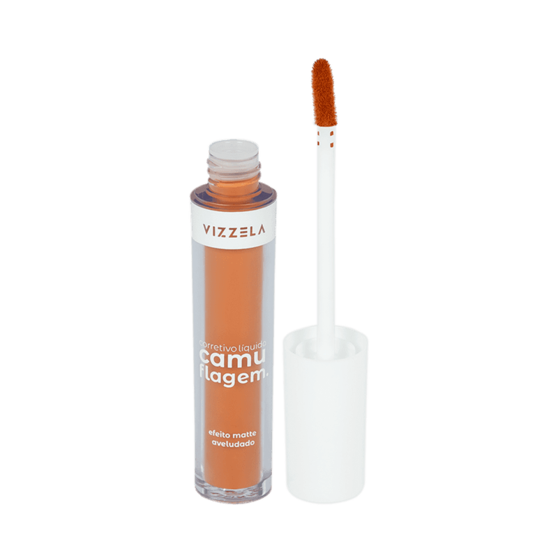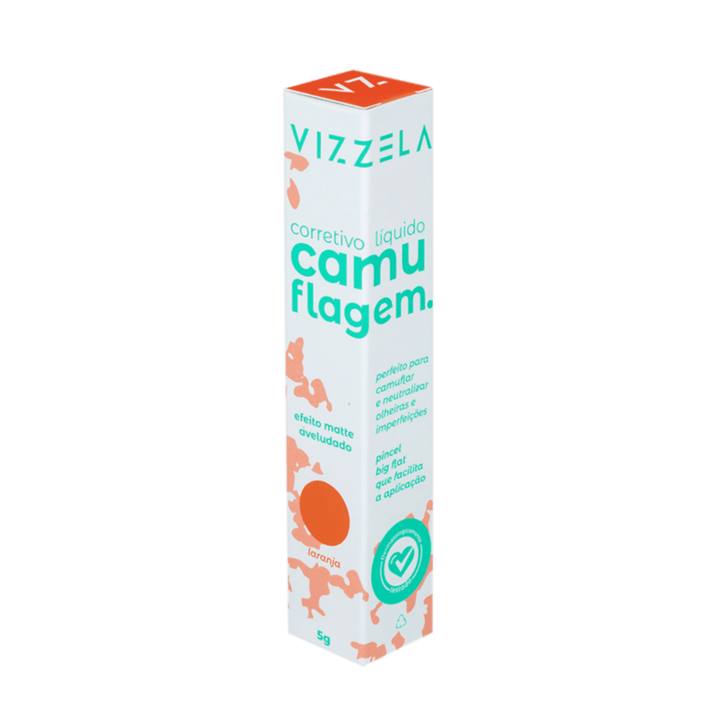 O Corretivo Líquido Vizzela Cosméticos Camuflagem Laranja oferece efeito matte aveludado, ideal para camuflar e neutralizar olheiras e imperfeições. Formulado com pigmentos tratados, garante cobertura eficaz das imperfeições, enquanto o pincel big flat facilita a aplicação. Deve ser utilizado antes do corretivo do tom da pele para neutralizar a mancha de acordo com o círculo cromático.