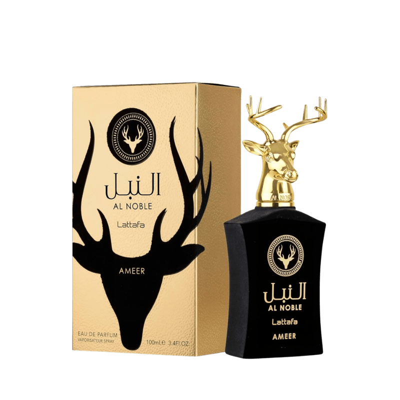 O Al Noble Ameer Lattafa Perfumes Eau de Parfum, de Lattafa Perfumes, é uma fragrância masculina amadeirada especiada que revela uma assinatura intensa e sofisticada. Sua composição destaca a profundidade do oudh combinada ao vetiver, ao cyperus esculentus, ao ládano e ao patchouli, formando uma base aromática rica e envolvente. O resultado é um perfume expressivo e elegante, ideal para ocasiões noturnas ou momentos em que se deseja transmitir presença e personalidade.